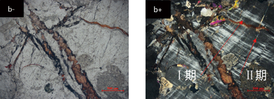 | 3961 m,黏土充填(+) | 4030 m,硅质充填(+) | ||||