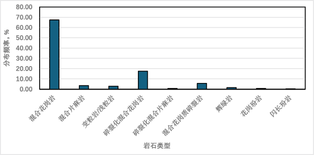 图 1 B油田太古界储层潜山铸体薄片岩性统计结果