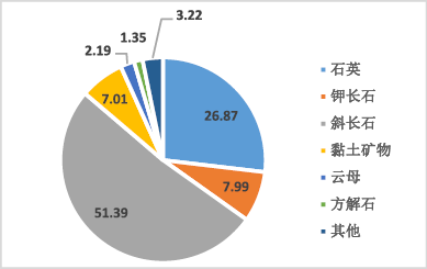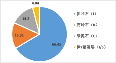 Figure 4 Pie chart of absolute mineral content and relative clay mineral content in the study area