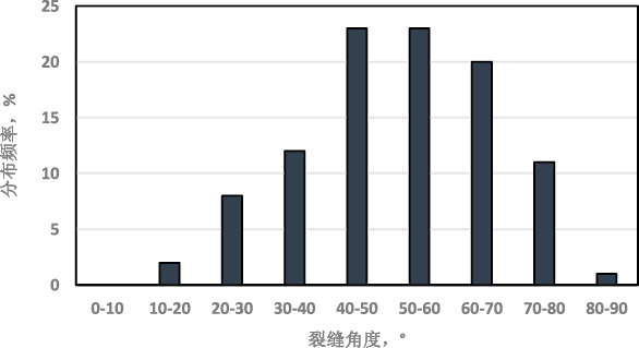 Figure 10 Histogram of fracture dip angle statistics of Archaean buried hill reservoirs in B Oilfield
