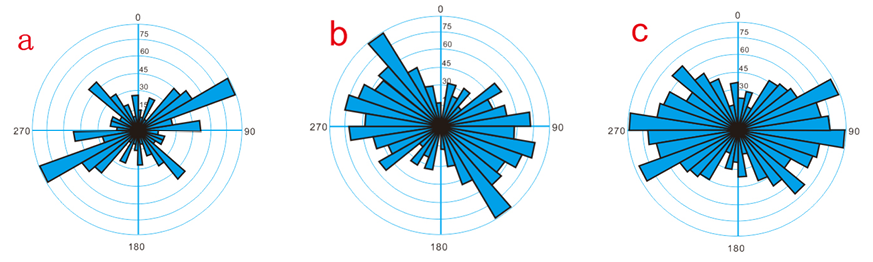 Figure 9 Rose diagrams of fracture strike of Archaean buried hill reservoirs in B Oilfield