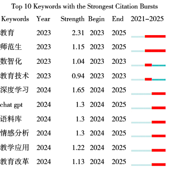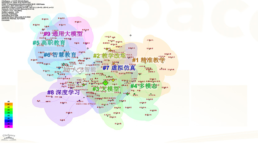 基于CiteSpace对2021—2025年我国大模型在教育领域应用相关文献的可视化分析,得出以下结论。