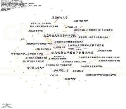 Figure 3 Co-occurrence map of institutions on educational applications of big models