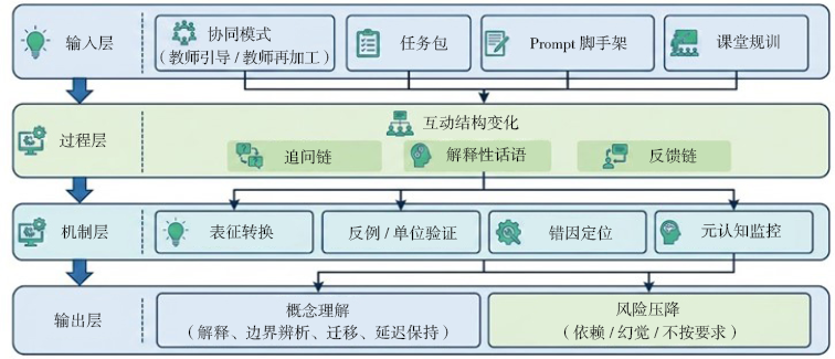 | 课堂规训与治理 | 禁止直要答案;强制验证;证据记录;教师把关 | 压降幻觉/算错/依赖;将错误转为诊断资源 | 使用规范;提交规范;课堂检查清单 |