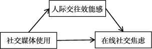 图 2 人际交往效能感在社交媒体使用与在线社交焦虑的中介模型