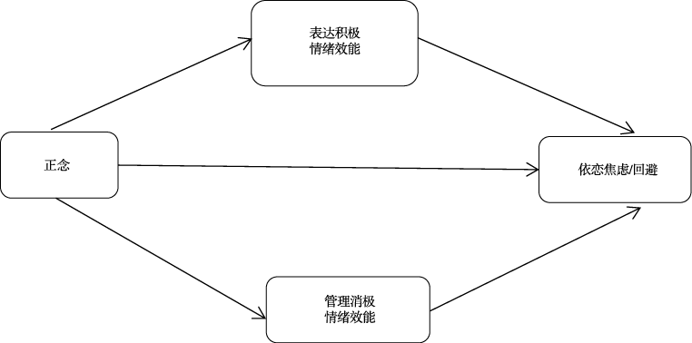 本研究根据正念的情绪调节作用理论和依恋理论,从发展的角度检验了情绪调节自我效能感在正念影响成人依恋的作用,揭示了正念影响成人依恋的内在机制。结果显示,正念通过提升个体管理消极情绪的自我效能感,进而促进安全成人依恋关系的发展,证实了正念的情绪调节作用和依恋的情绪调节本质。这一发现为成人依恋及正念的理论研究提供了新视角,丰富了对成人依恋影响因素的认识,为成人依恋焦虑和依恋回避的临床干预提供了新思路。本研究提示,从个体的情绪调节自我效能感入手,尤其是强化管理消极情绪的信念,能够更有效地通过正念训练实现依恋模式的优化。在心理咨询与治疗中,可设计以正念觉察为基础的情绪调节训练,引导来访者在觉察消极情绪的同时,通过成功的管理消极情绪,积累自我效能感,进而改善其在人际关系中的依恋焦虑和回避行为。然而,本文所得结论建立在横向研究基础之上,缺少跨时间的研究结果,难以对变量之间的因果关系进行证明。未来研究应探究更多的中介变量与调节变量,这将有助于深入认识正念与成人依恋的关系,并为成人依恋问题的相关干预提供新的方法。