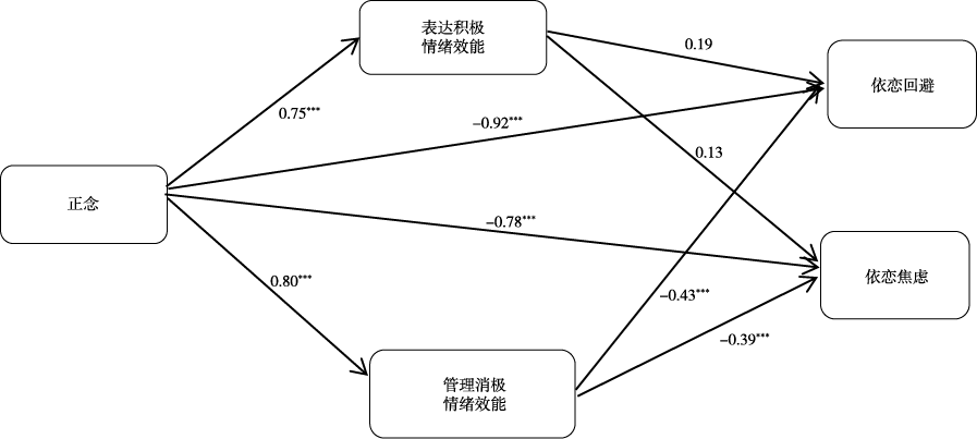 表 3 表达积极情绪效能感和管理消极情绪效能感在正念对依恋回避的双重中介影响